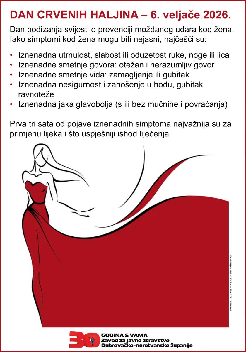 Dan crvenih haljina obilježava se prvog petka u veljači s ciljem podizanja svijest o prevenciji moždanog udara kao jednog od vodećih uzroka pobola i smrtnosti od kardiovaskularnih bolesti u žena širom svijeta te važnosti pravodobnog prepoznavanja simptoma.